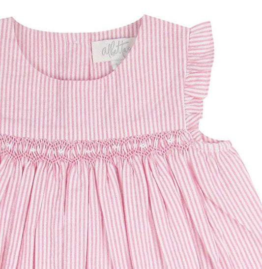 ピンクストライプスモッキングドレス