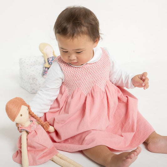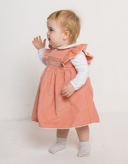 ハンドスモック・ダイヤモンドピンク・コーデュロイドレス