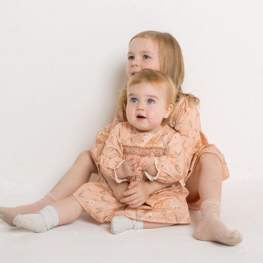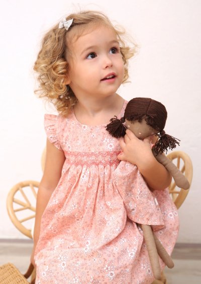 ピンクフローラル・スモッキングドレス